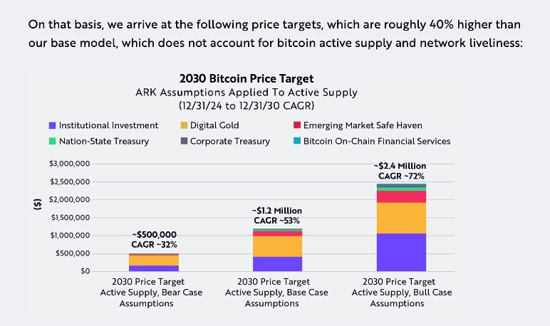 Ark’s New Bitcoin price prediction: (active supply considered)